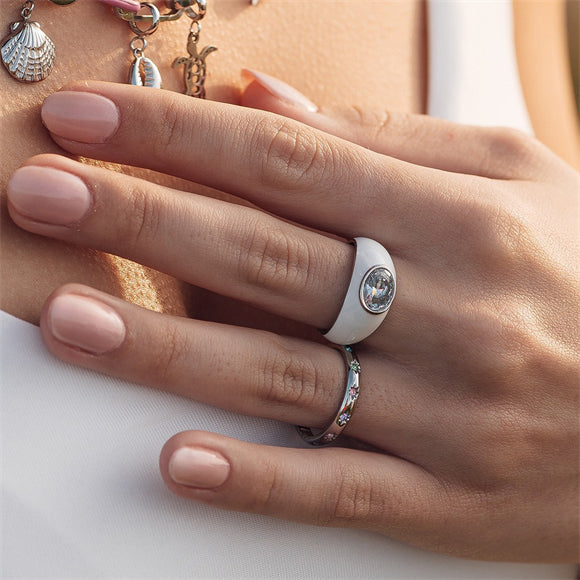 De iXXXi Fame ring Serena is een stijlvolle single ring van 3 mm breed, gemaakt van roestvrij staal met een goud- of zilverkleurige plating. De ring is op meerdere plekken ingelegd met multicolor zirconia’s, wat zorgt voor een speels en luxe accent.