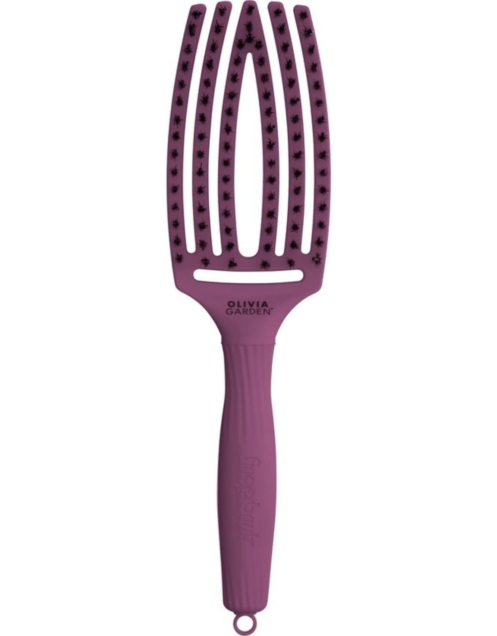 El Olivia Garden FingerBrush Combo Medium es un cepillo desenredante con una mezcla de púas de nailon y cerdas de jabalí. El pelo de jabalí alisa el cabello durante el peinado y aporta brillo y volumen. Los extremos perfectamente redondos de los alfileres de nailon proporcionan una sensación estimulante cómoda y son suaves para el cabello y el cuero cabelludo. La combinación de pelo 100% de jabalí que libera queratina con púas de nailon ionizado antiestático proporciona un hermoso brillo y volumen.